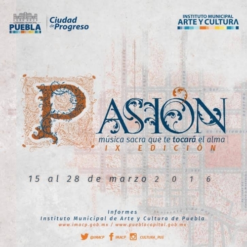 En el 2007 se realizó la primera edición del Festival Pasión: Música Sacra. Desde entonces se ha presentado principalmente música sacra de la época novohispana que se compuso en las Catedrales de Puebla, México, e incluso de Perú, por reconocidos músicos de capilla como Juan Gutiérrez de Padilla, Hernando Franco, Gaspar Fernándes y Antonio de Salazar, entre otros. Así mismo, se han realizado ciclos de cine alusivos a la Semana Santa, conferencias sobre el patrimonio religioso de Puebla y recorridos guiados por especialistas en los principales templos de la ciudad. Este festival ha despertado gran interés entre el público local, nacional e internacional y también entre agrupaciones artísticas y solistas cuyo trabajo artístico se desarrolla en torno a la investigación y ejecución de la música sacra; dado que que año con año buscan ser programados en dicho Festival.