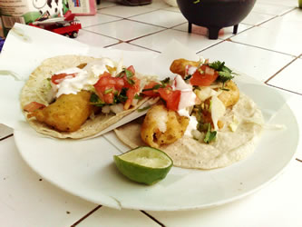 En La Paz hay unos famosos puestos en la vía pública que venden exquisitos tacos de mariscos, previamente capeados y fritos. Los hay de pescado, camarón, ostión, almeja, pulpo y hasta de langosta. La gran variedad de salsas disponibles es parte del atractivo. Dejemos en la boca poética de Armando Trasviña Taylor esta receta de tamal sudcaliforniano: