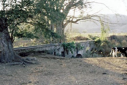 Acueducto con aparente, muros de piedra. Toda esa zona perteneció a la Hacienda de Tetitlán y más tarde, con el agrarismo quedó como ejido de Santa Isabel.